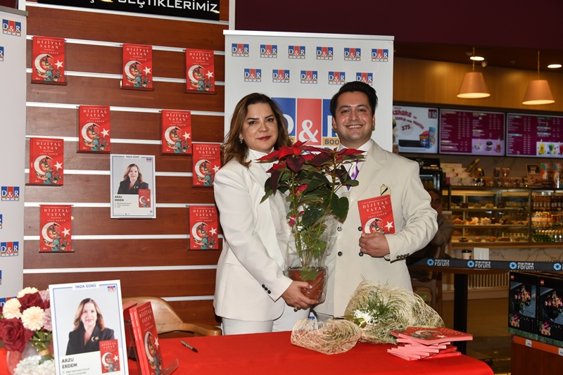 İş ve siyaset dünyasındaki başarısını yazarlıkta da kanıtlayan TYT Türk Yönetim Kurulu Başkanı Arzu Erdem, ‘Dijital Vatan’ isimli kitabının imza gününü Marmara Forum D&R mağazasında gerçekleştirdi. Yakın dostlarının yanı sıra birçok kitapsever’in de kitap imzalattığı etkinlikte Arzu Erdem bol bol hatıra fotoğrafı da çektirdi.